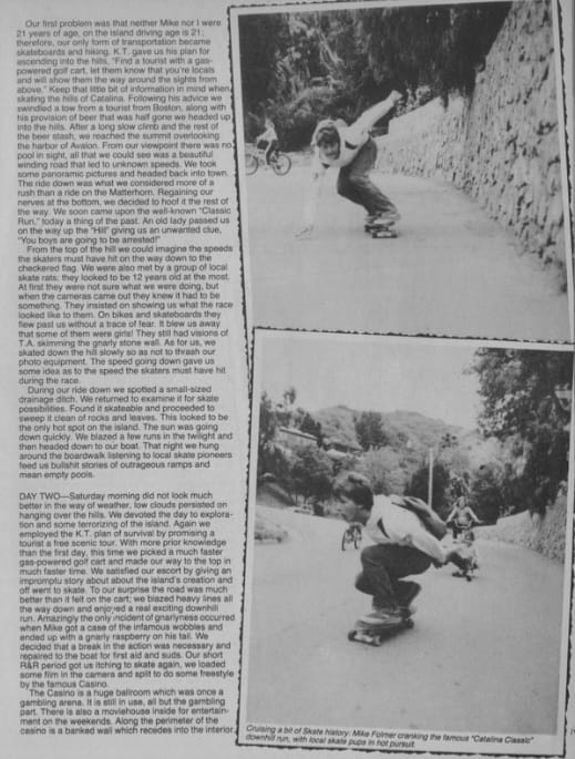 E, se a edição tinha espaço para reflexão, também tinha aventura. Em Catalina Island Revisited (página 16), o guia Mike Folmer levava o leitor para um tour de skate pela ilha de Catalina. Já Looking Down the Gutter (página 22) trazia o espírito rebelde do “viva para andar, ande até morrer”. Porque o skate, afinal, sempre foi sinônimo de intensidade.