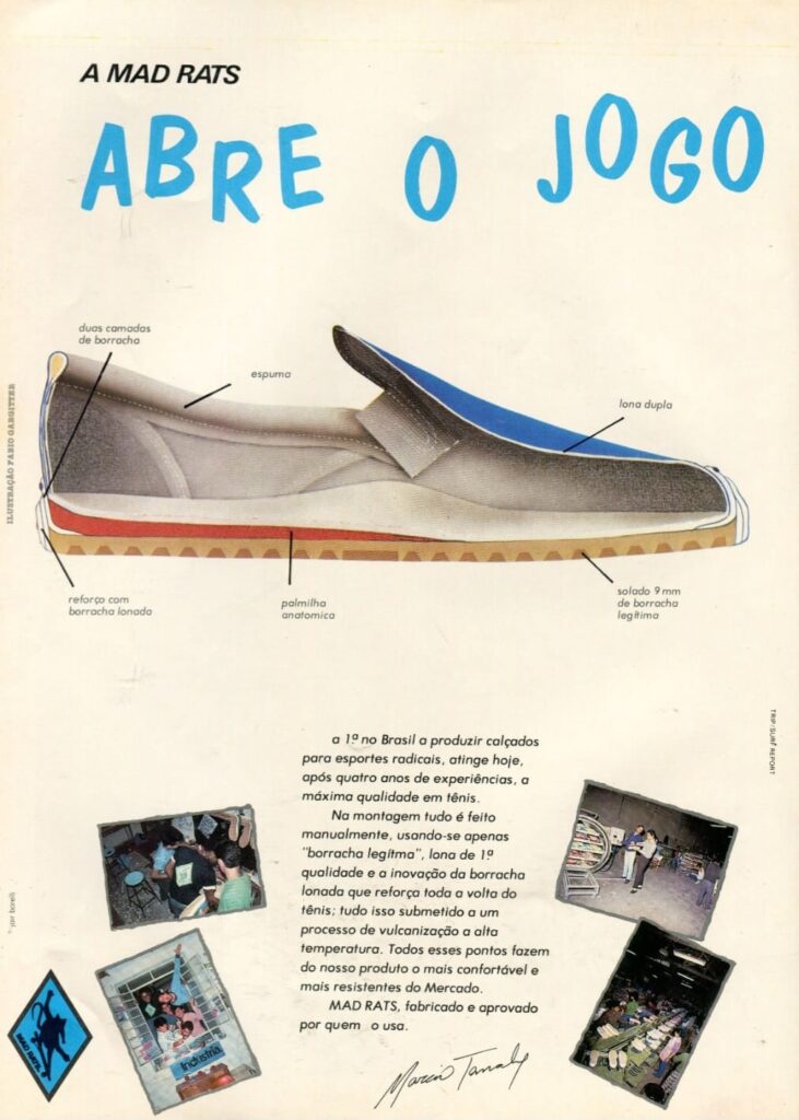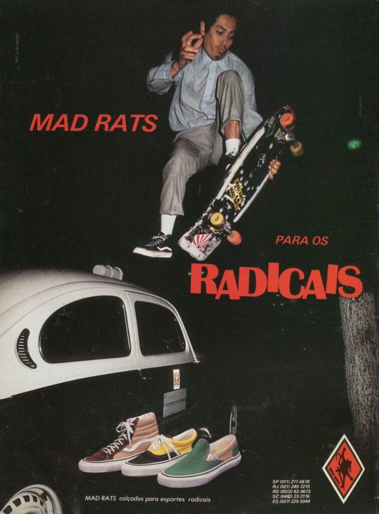 O primeiro tênis Mad Rats foi um marco. Inspirado nos modelos clássicos da época, mas adaptado à realidade brasileira, ele apresentava sola mais resistente, costuras reforçadas e um design alinhado à estética do skate. Mais do que um produto, ele simbolizava a independência da cena nacional em relação ao mercado estrangeiro.
