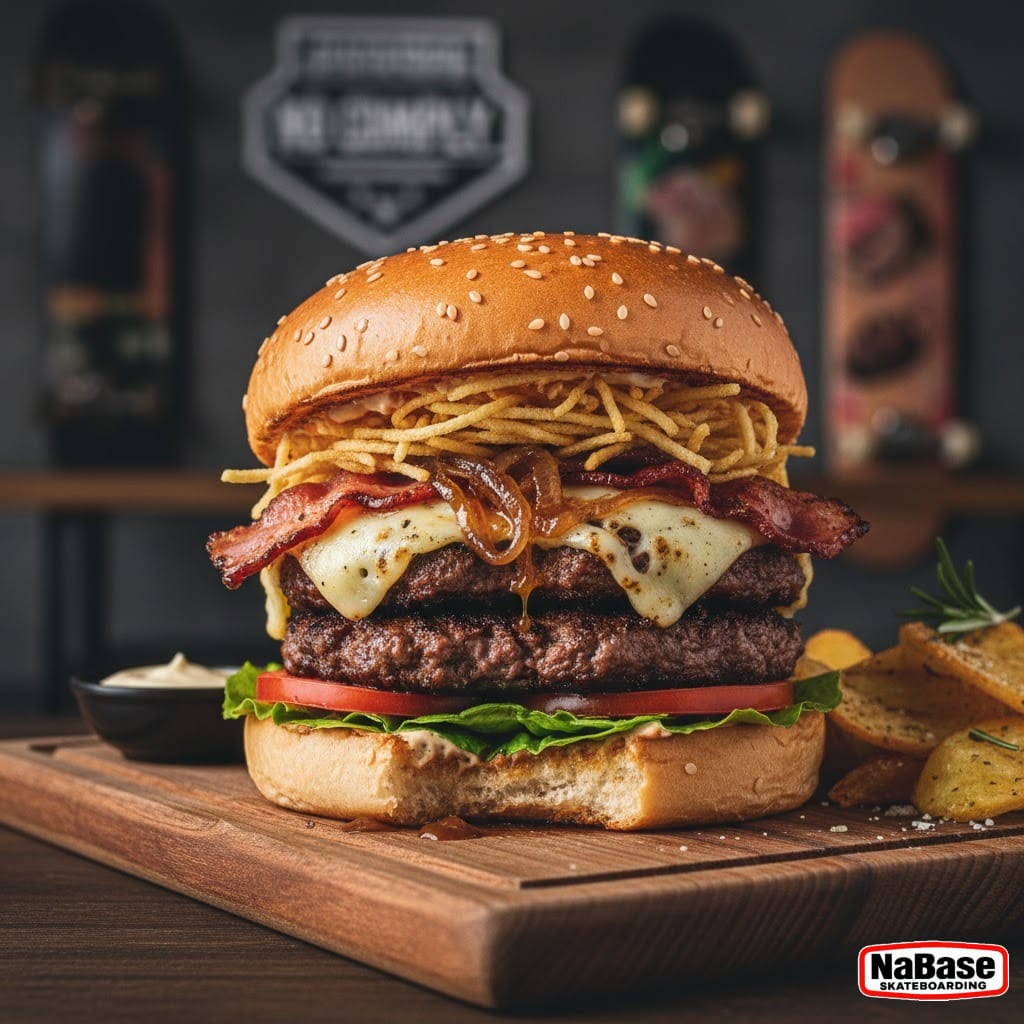 O No Comply nasceu da ideia de unir técnica, ousadia e sabor — assim como o próprio truque que inspira seu nome no skate. E se o movimento exige equilíbrio e controle, o hambúrguer segue a mesma lógica: ingredientes no ponto certo, texturas contrastantes e uma explosão de sabor a cada mordida.